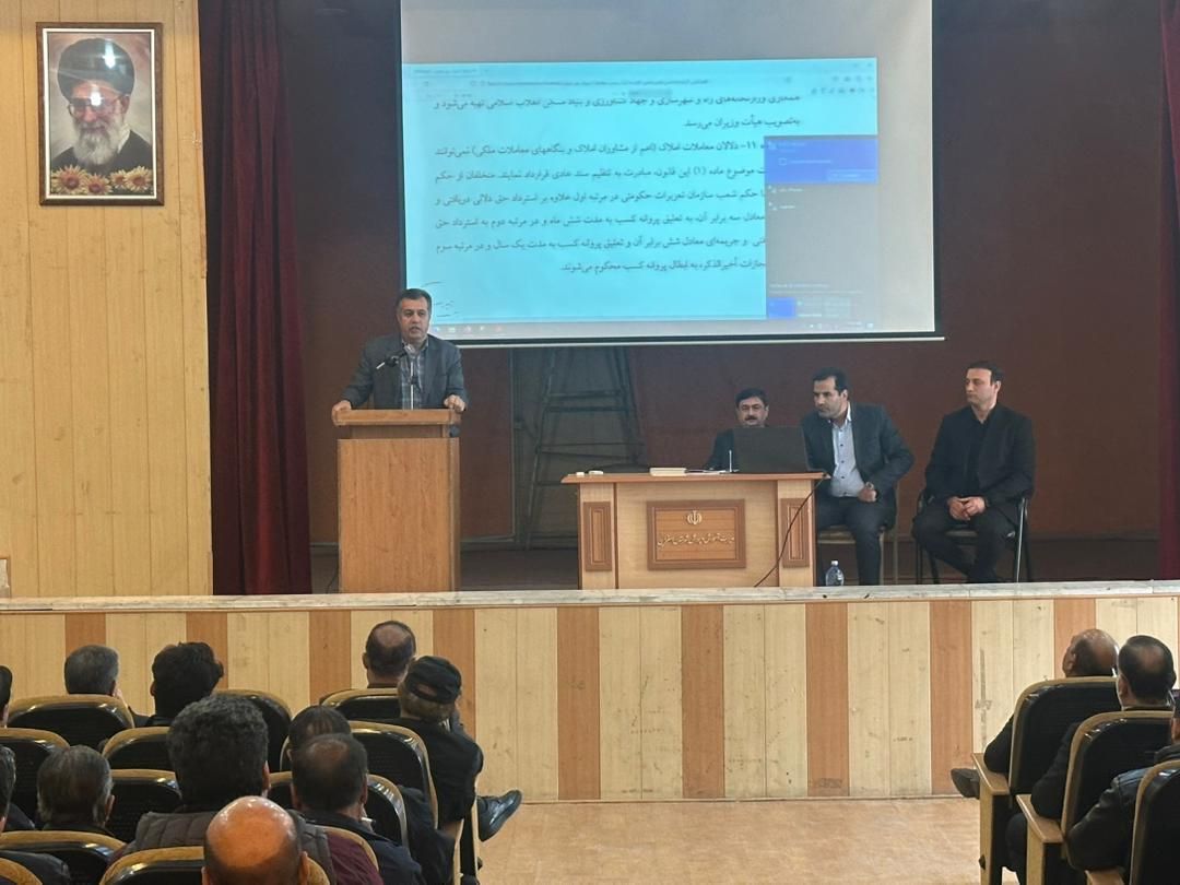 در مورخه ۱۴۰۳/۸/۳۰ جلسه ای به منظور فراهم نمودن دوره آموزشی در شهرستان اسفراین به منظور اجرای قانون الزام به ثبت رسمی معاملات اموال غیر منقول با حضور رئیس محترم هیئت مدیره کانون سردفتران و دفتریاران استان خراسان شمالی جناب آقای قجری و جناب آقای نشات معاونت محترم اسناد اداره کل ثبت اسناد و املاک و آقایان ترکانلو و گریوانی اعضای محترم هیئت مدیره کانون و مهندس کلاتی مسئول محترم آی تی اداره کل ثبت اسناد و املاک استان و جناب آقای خانزاده رئیس محترم اتحادیه مشاورین املاک شهرستان اسفراین و همچنین اطلاع رسانی در خصوص قانون الزام و اپلیکیشن کاتب برای مشاورین محترم املاک شهرستان اسفراین تشکیل و موارد لازم مشروحا توسط مسئولین زیربط در جلسه بیان گردید.